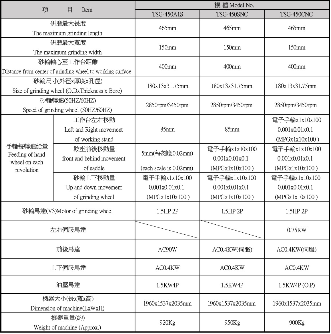 TSG-450A1S TSG-450SNC TSG-450CNC TATUNG-GRINDER 冠隈精密平面磨床機