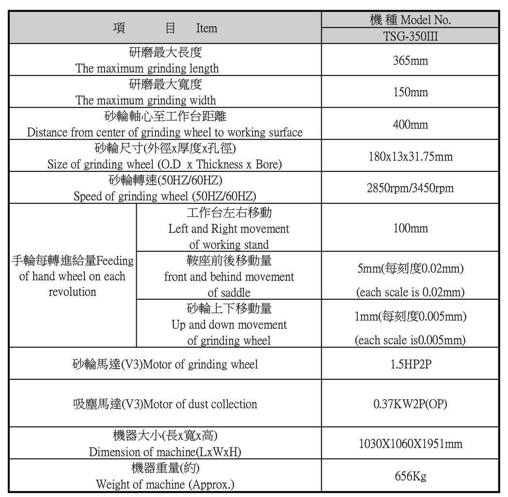 TSG-350III TUTANG-GRINDER 冠隈精密平面磨床機