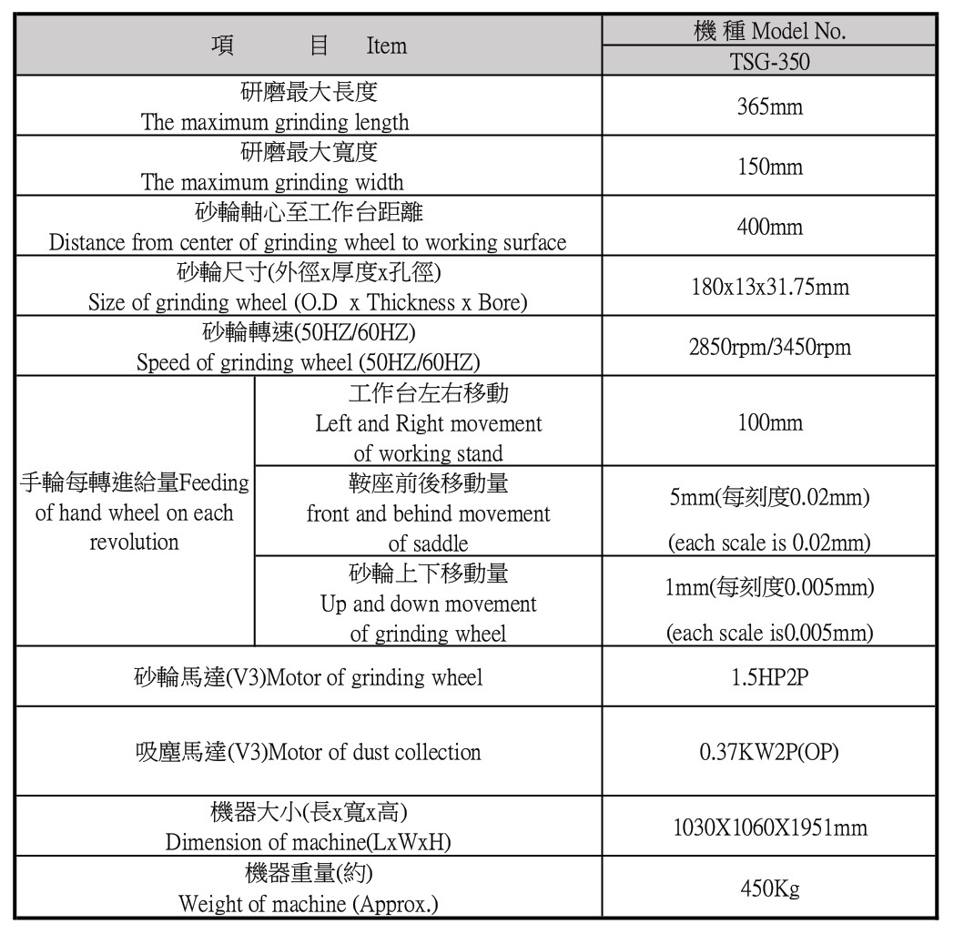 TSG-350 TATUNG-GRINDER 冠隈精密平面磨床機